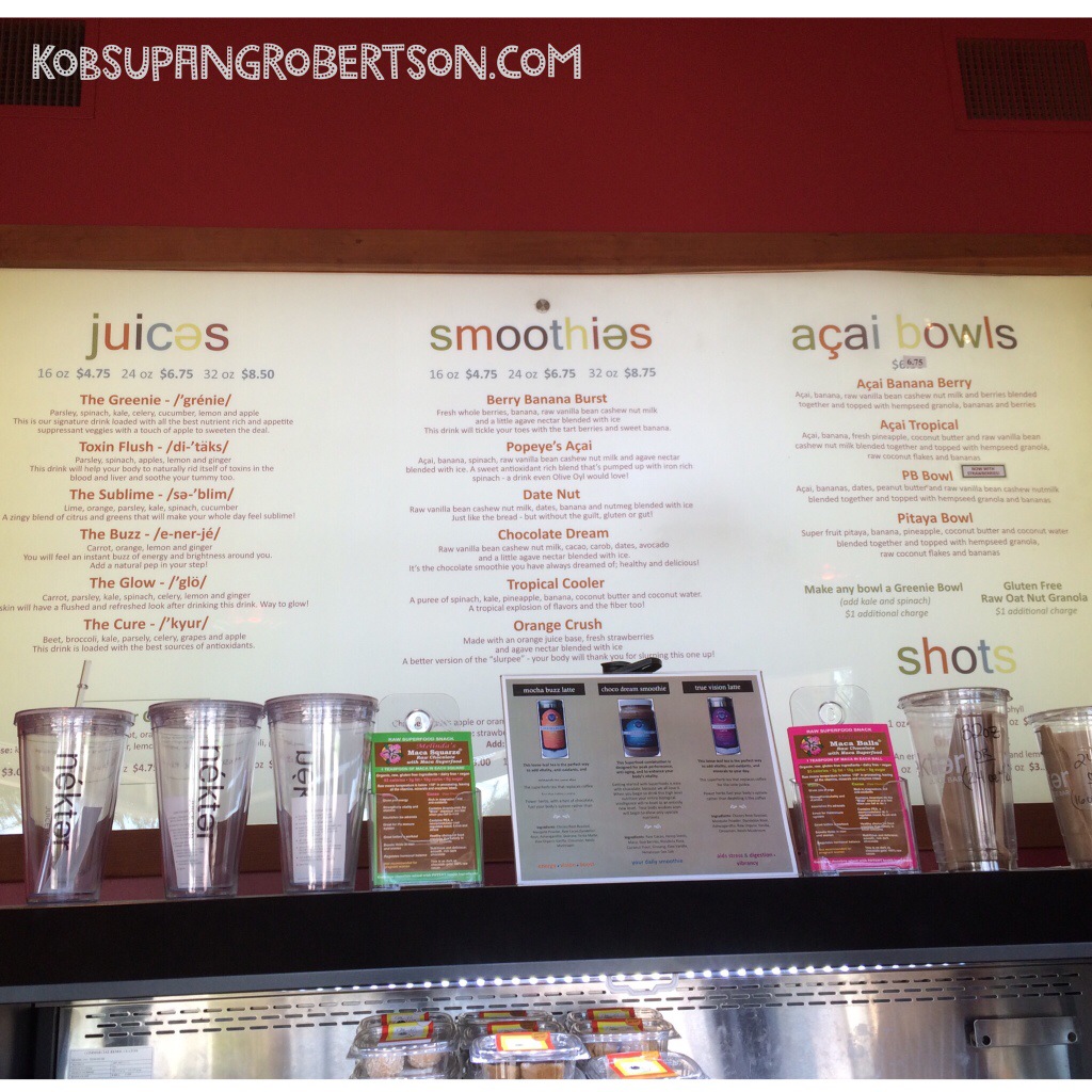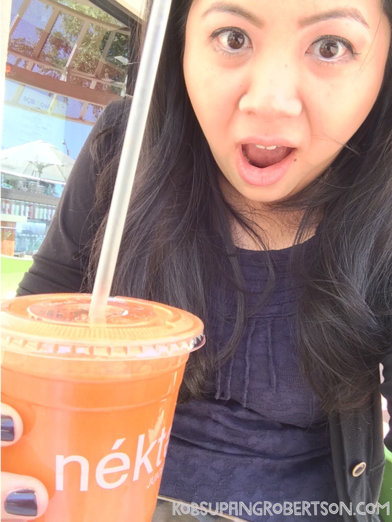My luck finally came a few minutes later when we were in West Hollywood. I spotted a juice bar called “Nekter Juice Bar,” and Maria had to make a turn for me.