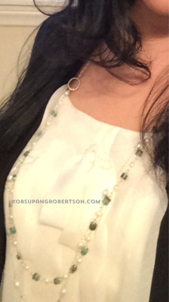 I recently had the opportunity to work as a member of press on PaleyFest. The very first thing I did, once I learned that I was approved, was to contact my friend, Gam, the designer jeweler of Design By Gam. Gam makes simple, elegant, and custom jewelry. Her pieces feel like extensions of your body and style, not just accessories. We both discussed about what would go with my outfit and conceived of a pearl stud earrings and beaded-string necklace.