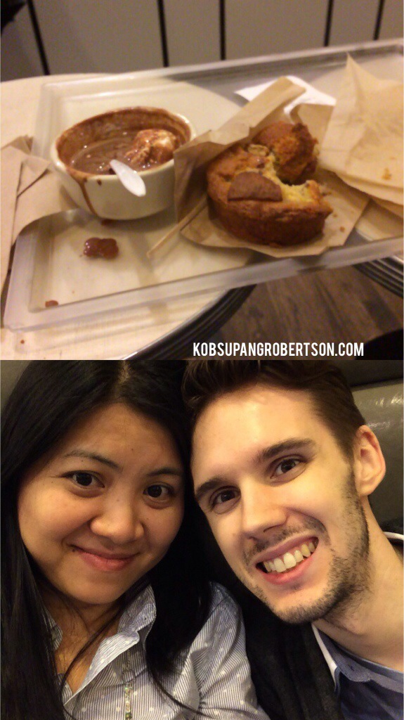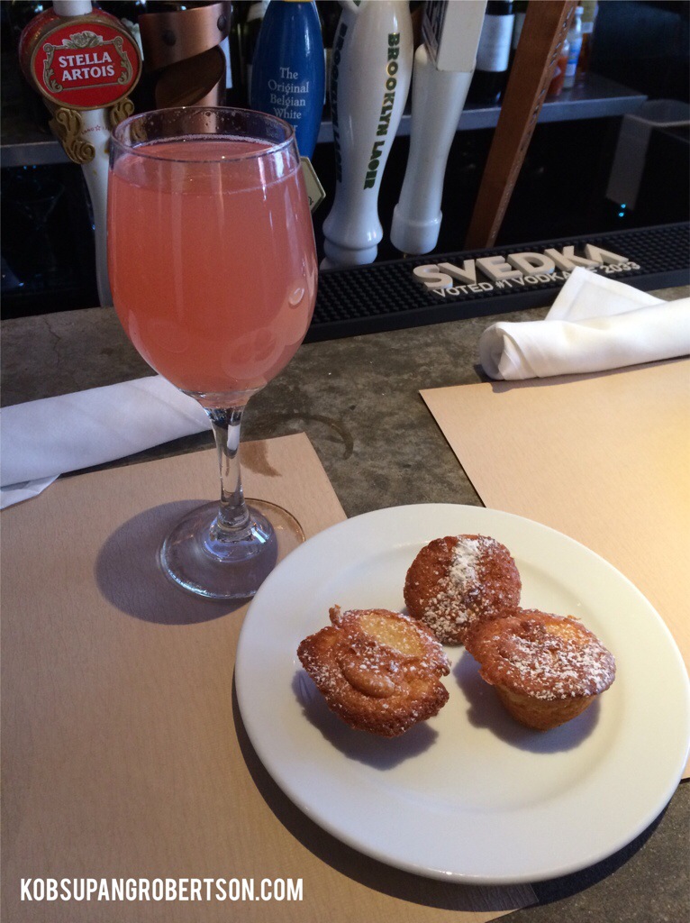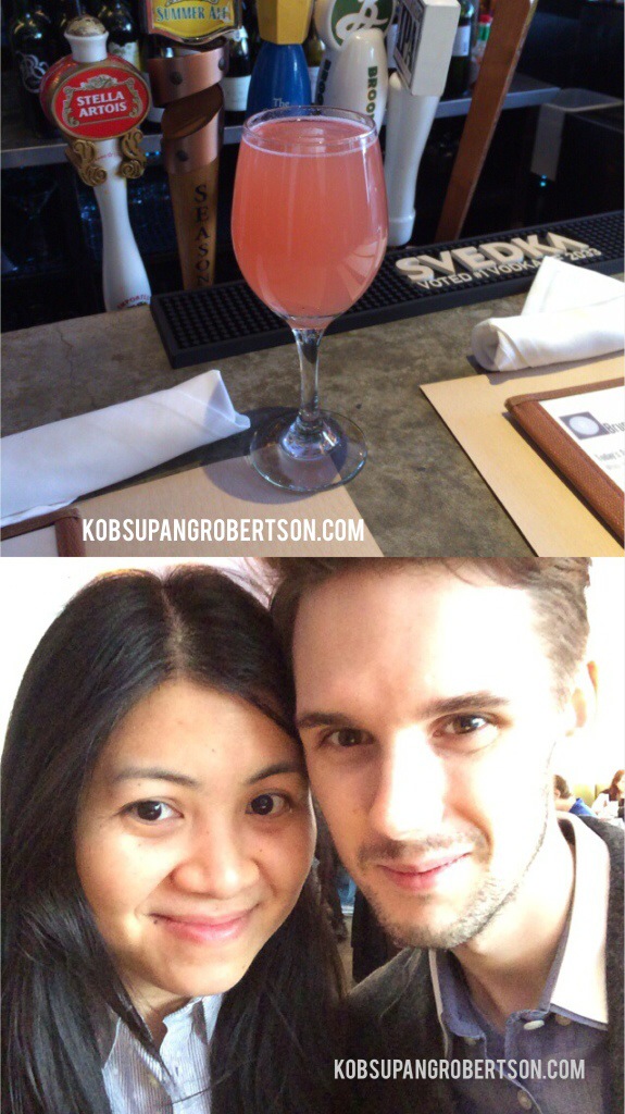 My husband and I made plans to spend all day in the city for my birthday. We left our place early to try to get tickets for “Of Mice And Men.” Unfortunately, we couldn’t get seats next to each other, so instead we took a stroll in the theater district. We wanted to have brunch at my favorite Thai place “Pure Thai Cookhouse” between 51st and 52nd St and 9th Ave. Guess what? Strike 2! It didn’t open till noon. As luck would have it, we walked around and stumbled onto this placed called Eatery, and its neighboring joint called E-Bar. I was delighted we both got carded once we asked for Guava mimosas. On top of that, he sent me a free glass of guava mimosa as a happy birthday! Score!