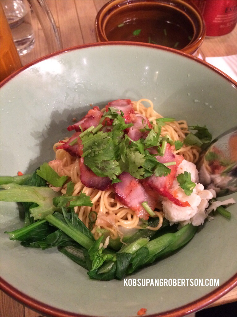while I had a bowl of Ratchaburi Crab And Pork Dry Noodles: handmade egg noodles, roasted pork, lump crab meat, yu choy, scallion.